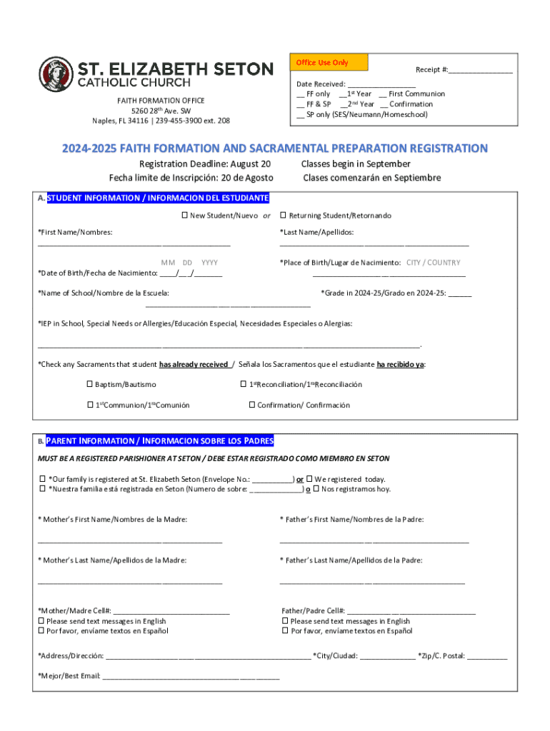 Office Use OnlyReceipt #:___Date Received: ___ __ FF only __1st Year __ First Communion __ FF & SP __2nd Year __ Confirmation __ SP only (SES/Neumann/Homeschool)FAITH FORMATION OFFICE 5260 28th Ave.