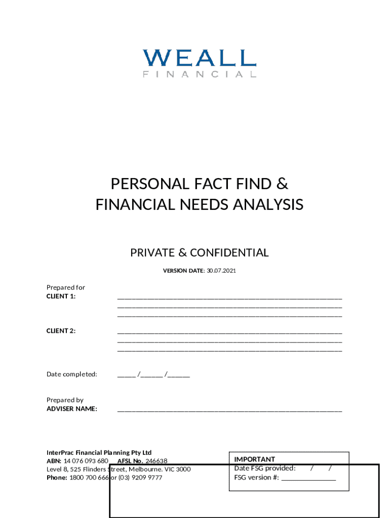 Frequently asked questions about the form Personal Fact Find & Financial Needs Analysis