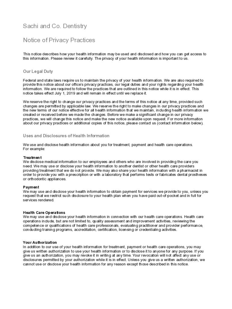 Get the free Notice of Privacy Practices