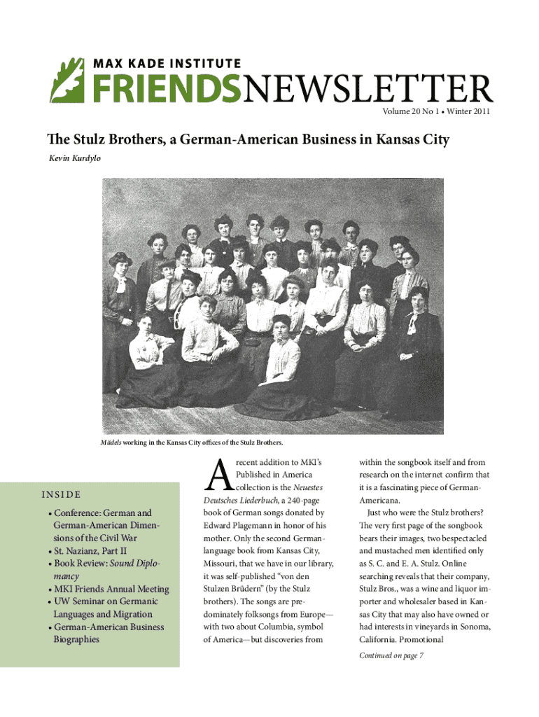 Volume 20 No 1 Winter 2011The Stulz Brothers, a GermanAmerican Business in Kansas City Kevin KurdyloMdels working in the Kansas City offices of the Stulz Brothers.INSIDE Conference: German and GermanAmerican