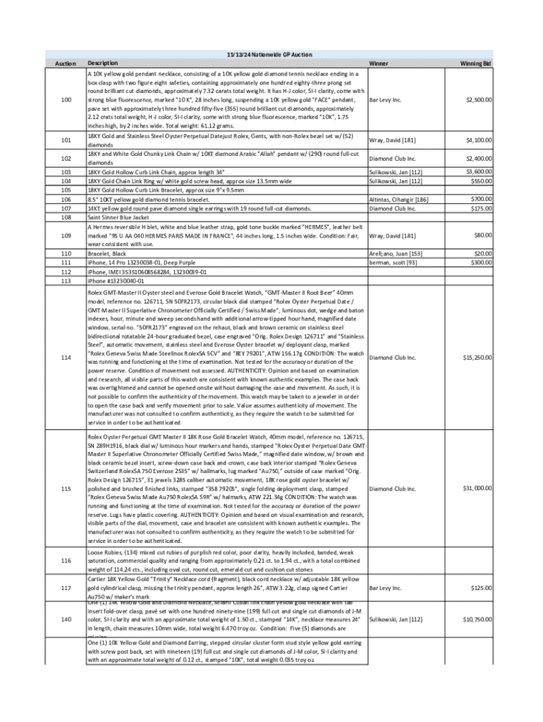 This auction features a wide range of high-value items, including luxury jewelry, designer watches, gold and diamond accessories, and various collectible goods such as electronics and clothing. Significant