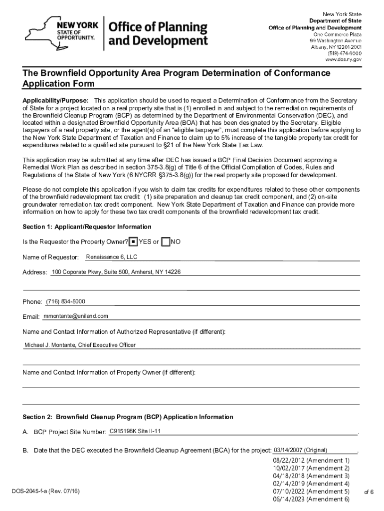 This application is intended for requesting a Determination of Conformance for projects located on properties under the Brownfield Cleanup Program within designated Brownfield Opportunity Areas. It