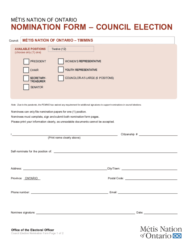Get the free Nomination Form – Council Election