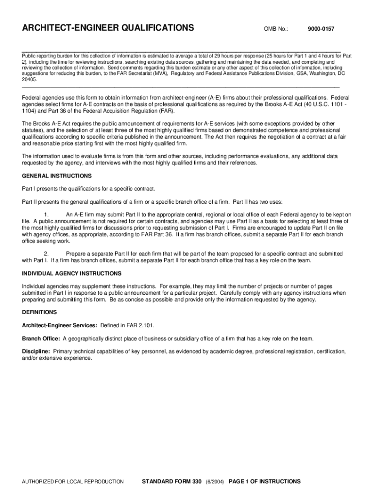 This form is used by federal agencies to collect information from architect-engineer firms regarding their professional qualifications for contract selection. It is a requirement under the Brooks