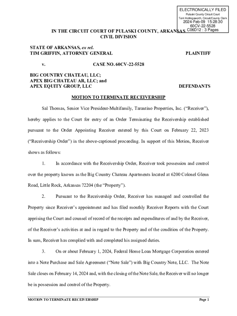 ELECTRONICALLY FILED Pulaski County Circuit Court Terri Hollingsworth, Circuit/County Clerk2024Feb09 15:28:30 60CV225528 IN THE CIRCUIT COURT OF PULASKI COUNTY, ARKANSAS C06D12 : 3 PagesCIVIL DIVISION