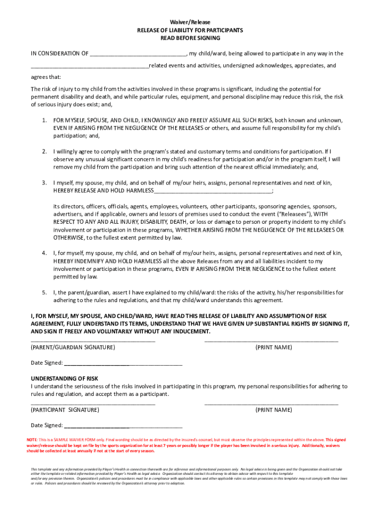 Get the free Waiver/release