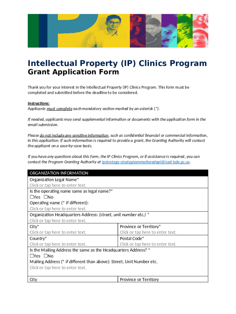 What is Intellectual Property (ip) Clinics Program Grant Application Form?