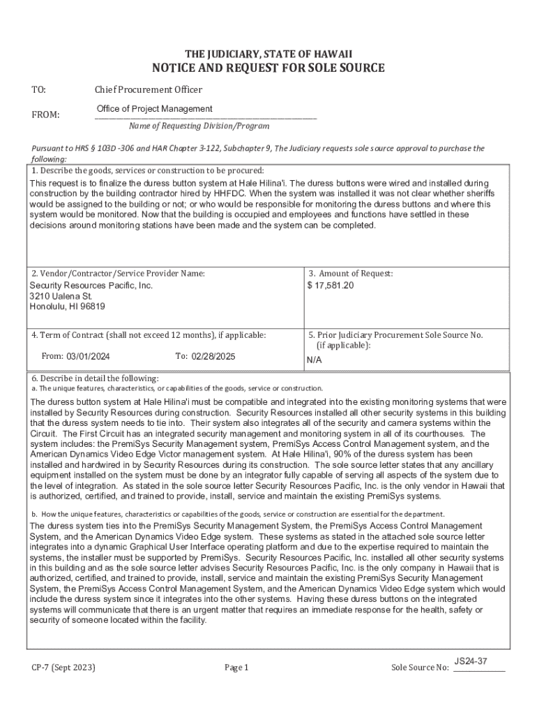 Get the free Notice and Request for Sole Source