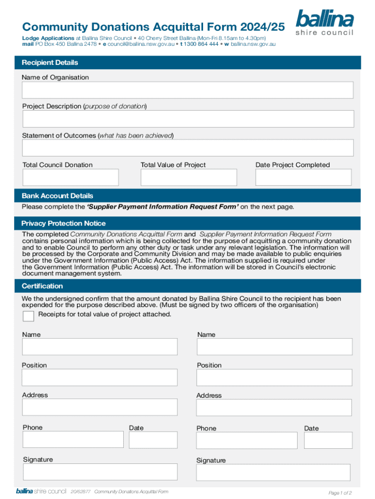 Get the free Community Donations Acquittal Form 2024/25