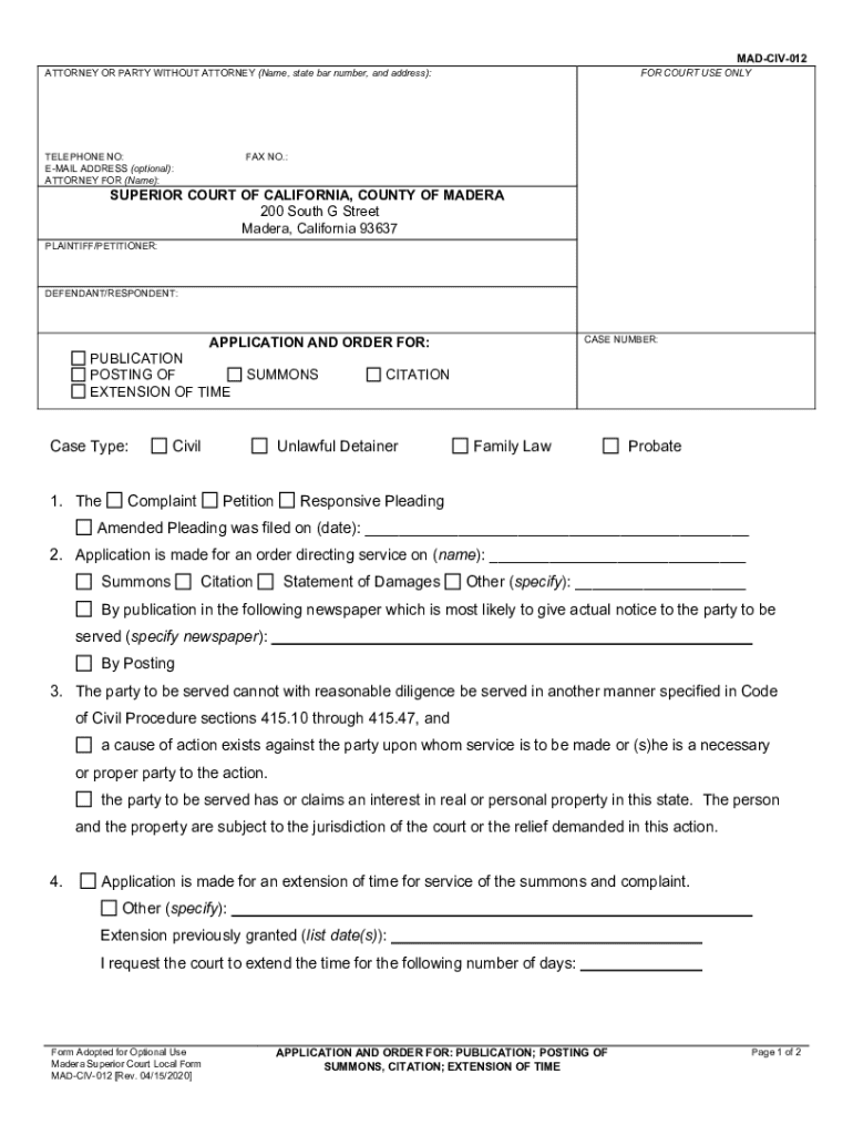 CA MAD-CIV-012 - County of Madera 2020-2026 free printable template