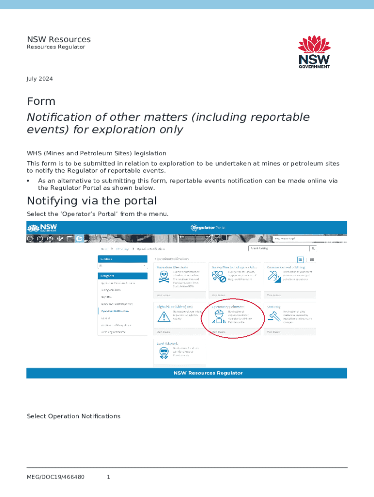 Instructions for the Notification of other matters (including reportable events) for exploration only form