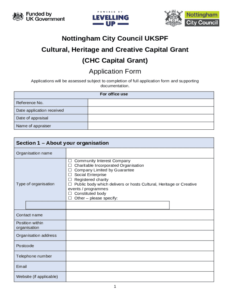 Template Nottingham City Council Ukspf Cultural, Heritage and Creative Capital Grant Application - nottinghamcity gov instructions