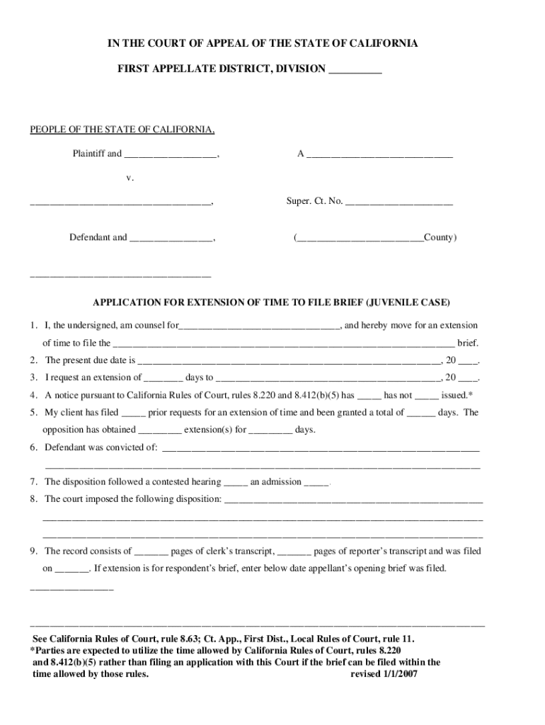 CA Application for Extension of Time to File Brief (Juvenile Case) 2007-2026 free printable template