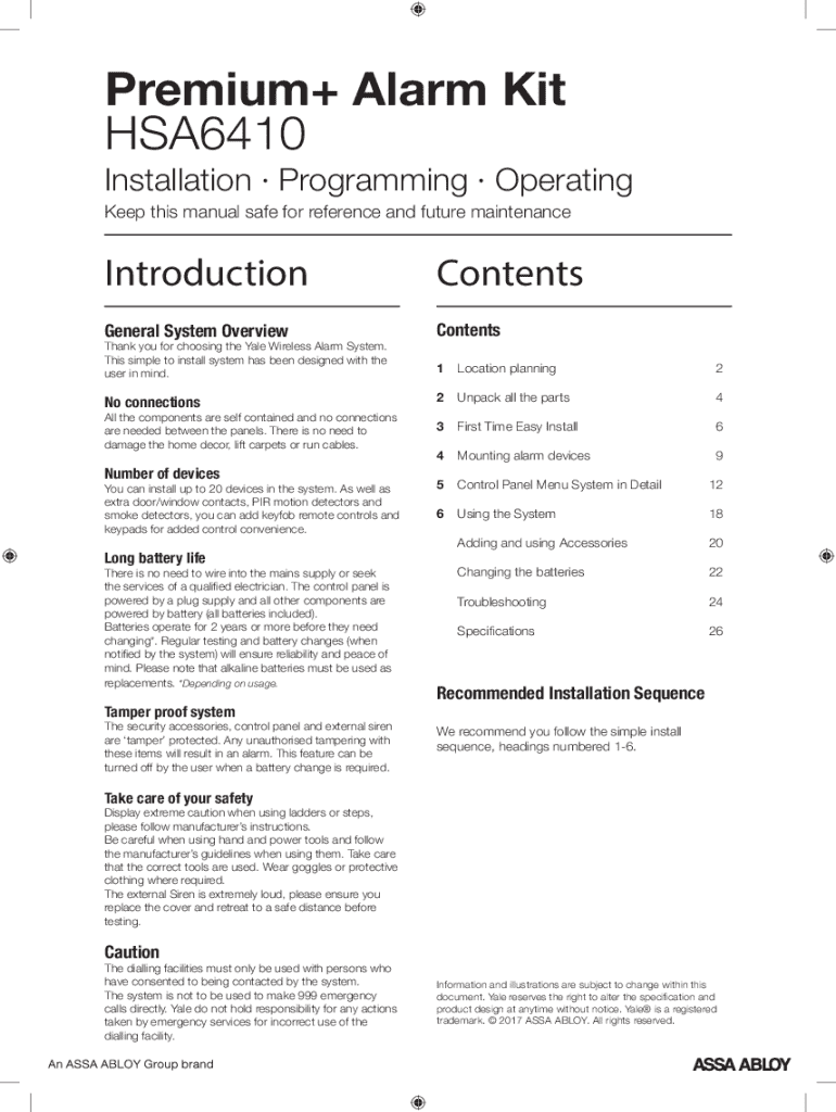 Get the free yale hsa6410 manual