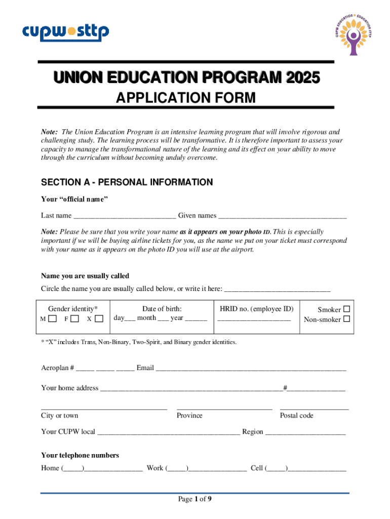 Fill out your personal information accurately, including name, contact details, and union membership number.