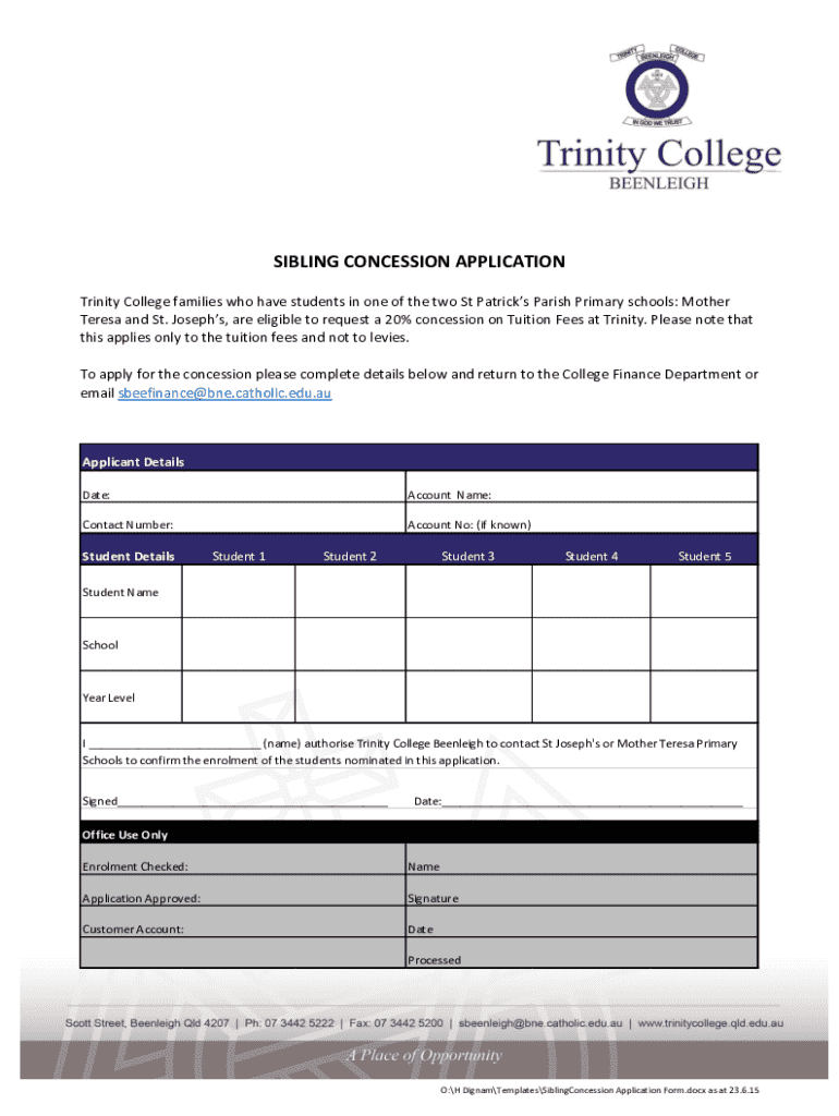 Get the free Sibling Concession Application