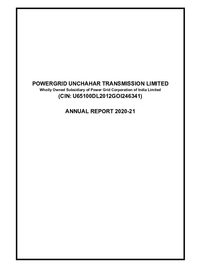This document is the annual report for the financial year 2020-21 of POWERGRID Unchahar Transmission Limited, detailing the company\'s performance, financial statements, and governance information.