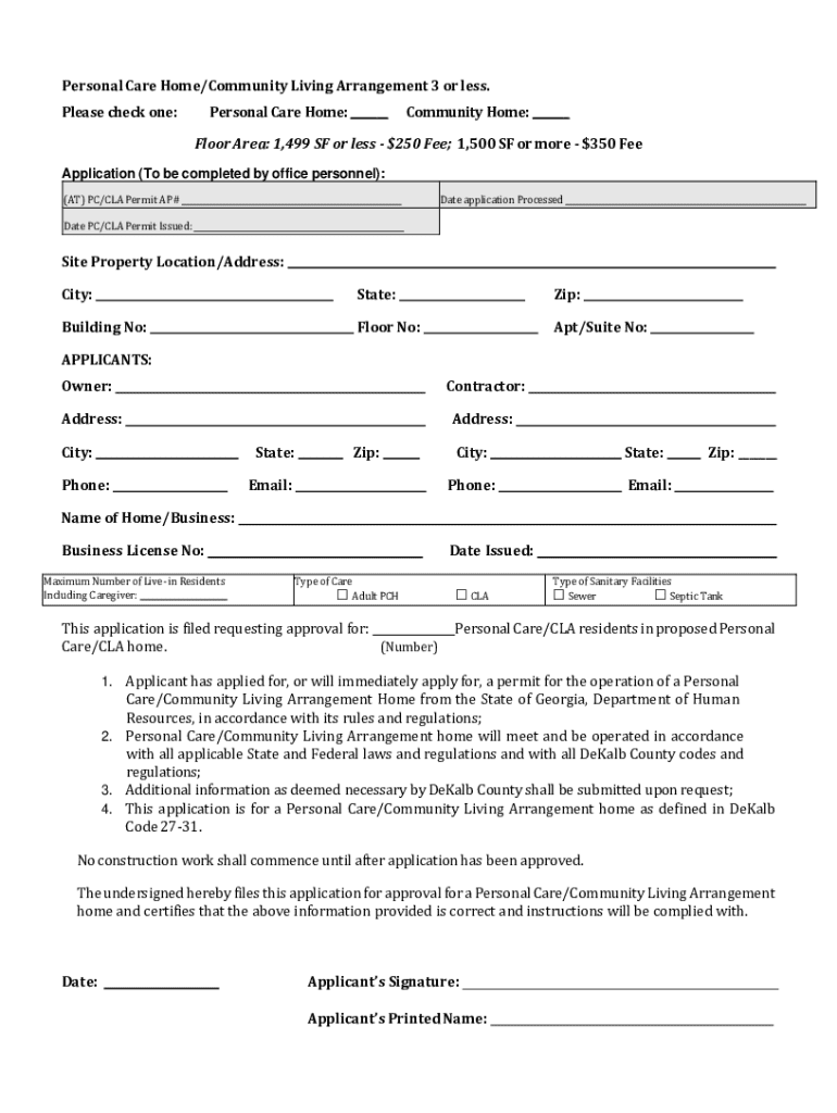 Get the free Personal Care Home/community Living Arrangement Application