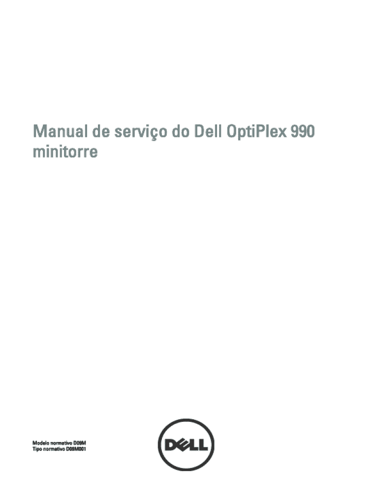 Manual de servio do Dell OptiPlex 990 minitorreModelo normativo D09M Tipo normativo D09M001Notas, Avisos e Advertncias NOTA: uma NOTA fornece informaes importantes para ajudar voc a usar melhor os