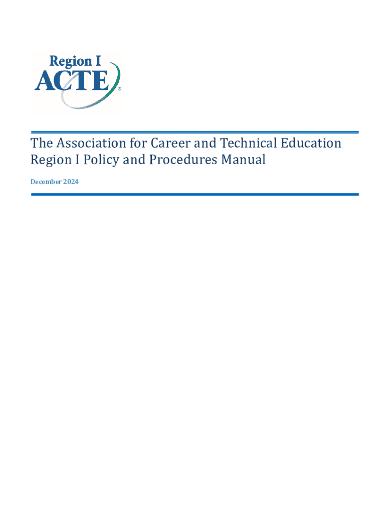 El Manual de Políticas y Procedimientos de la Región I de la Asociación para la Educación Profesional y Técnica (ACTE) establece las políticas que definen la estructura y responsabilidades de
