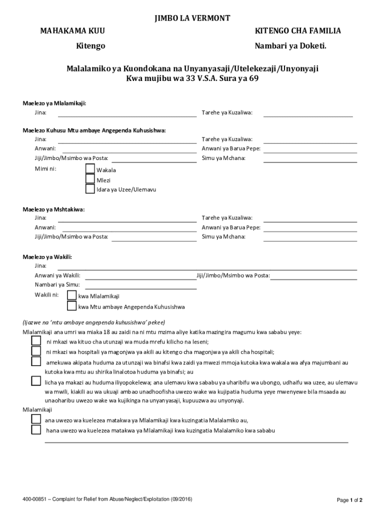 MAHAKAMA KUUKITENGO CHA FAMILIAKitengoNambari ya Doketi.Malalamiko ya Kuondokana na Unyanyasaji/Utelekezaji/Unyonyaji