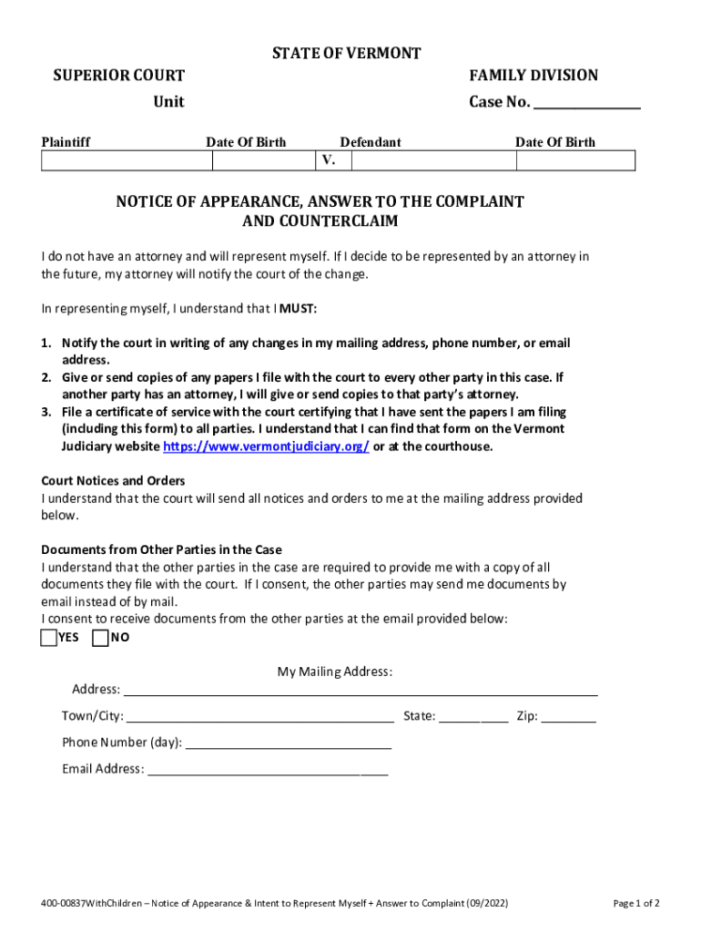 Get the free Notice of Appearance, Answer to the Complaint and Counterclaim