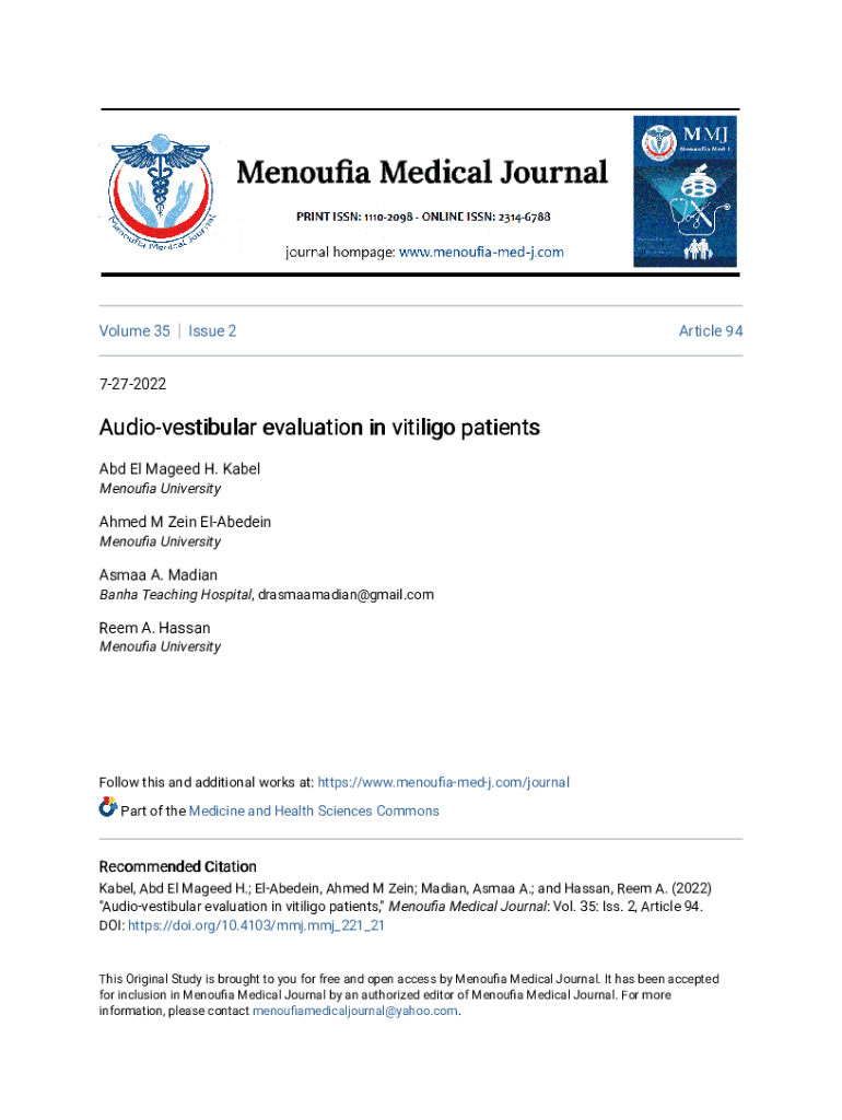 Get the free Audio-vestibular evaluation in vitiligo patients