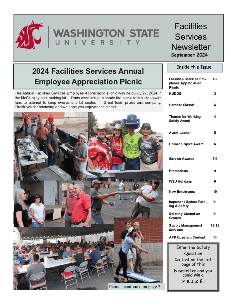 Facilities Services NewsletterSeptember 20242024 Facilities Services Annual Employee Appreciation Picnic The Annual Facilities Services Employee Appreciation Picnic was held July 27, 2024 in the McCluskey