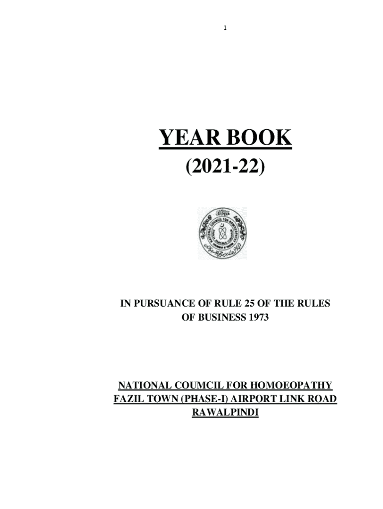 This document serves as a comprehensive yearbook detailing the activities, history, functions, achievements, and financial position of the National Council for Homoeopathy for the year 2021-22.