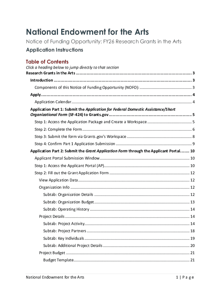 Get the free Notice of Funding Opportunity: Fy26 Research Grants in the Arts