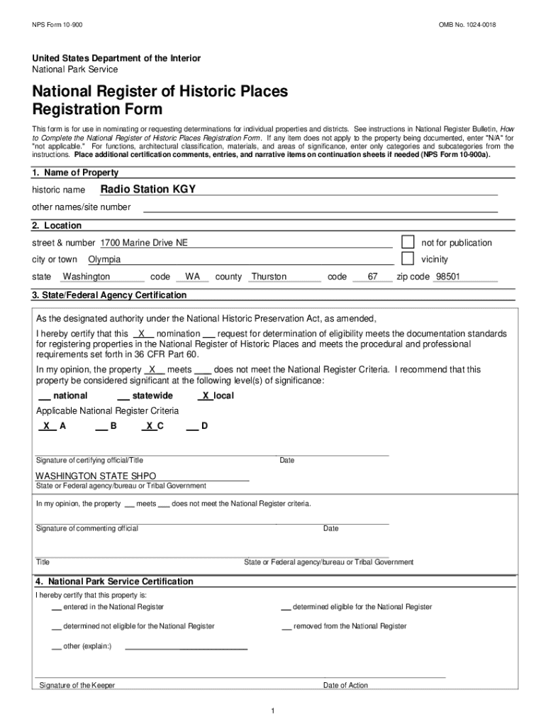 NPS Form 10-900 is a prescribed form used by the National Park Service (NPS) to nominate properties for inclusion in the National Register of Historic Places.