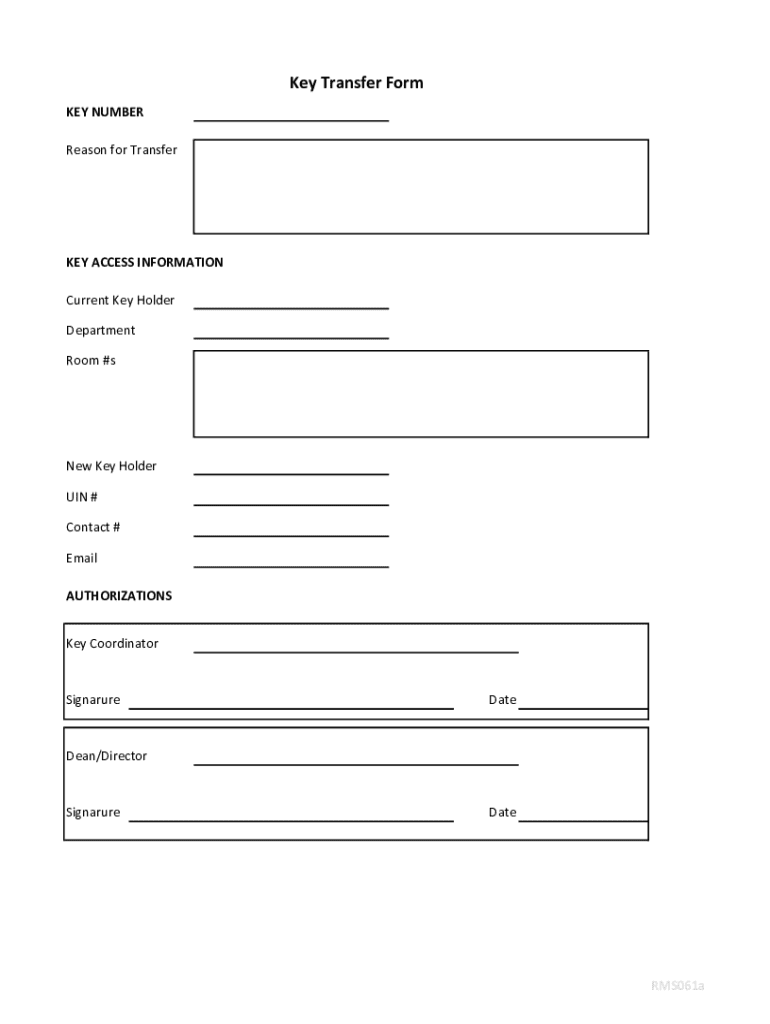 A form used to facilitate the transfer of key access from one individual to another within an organization.