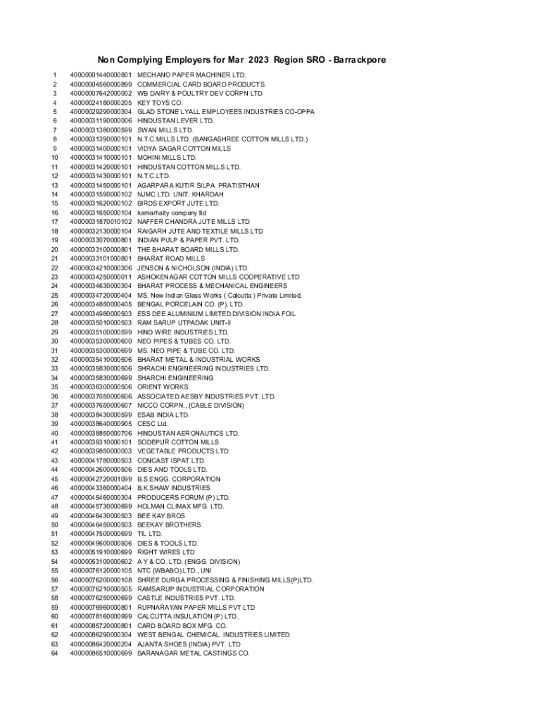 Get the free Non Complying Employers for Mar 2023 Region SRO - Barrackpore