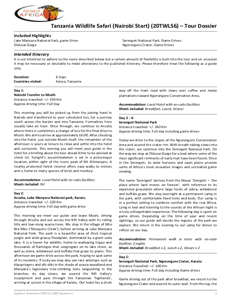 Fill out your tanzania wildlife safari nairobi online with pdfFiller!