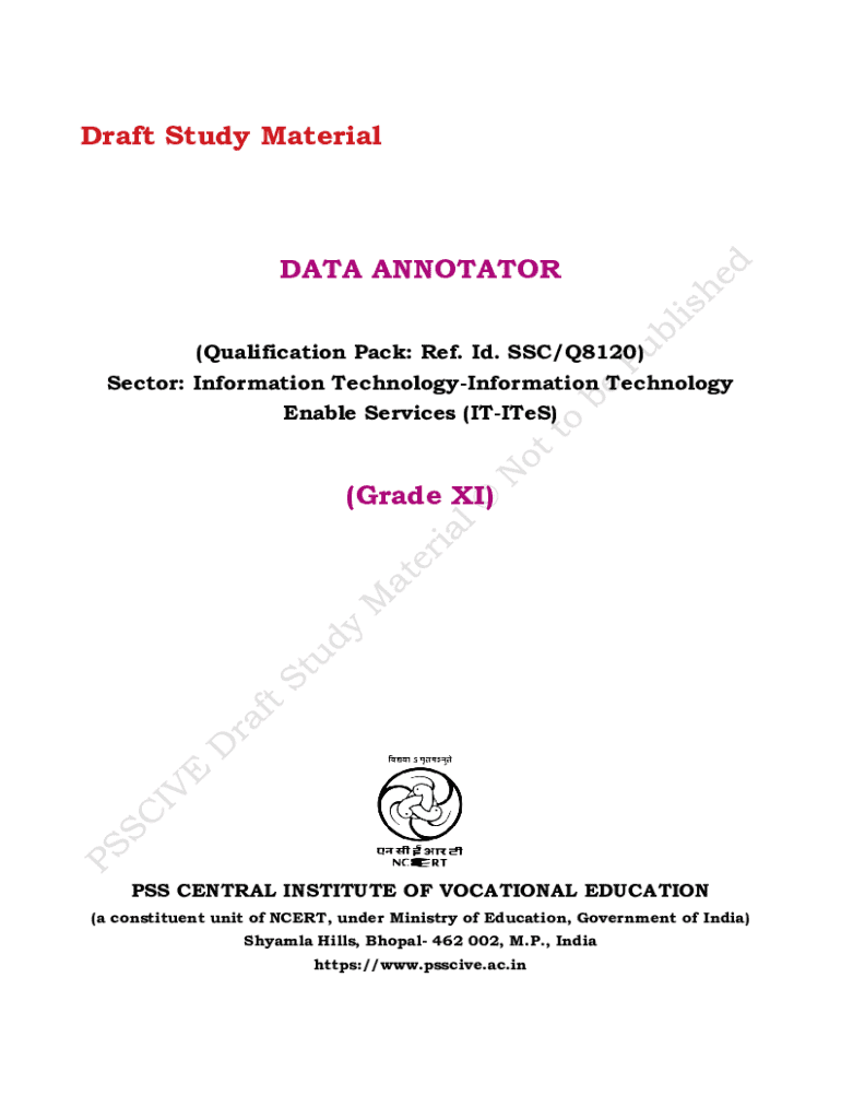 Draft Study MaterialDATA ANNOTATOR (Qualification Pack: Ref. Id. SSC/Q8120) Sector: Information TechnologyInformation Technology Enable Services (ITITeS)(Grade XI)PSS CENTRAL INSTITUTE OF VOCATIONAL