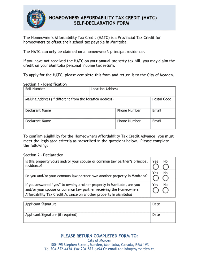 The HATC Self Declaration Form can be filled out by homeowners who are eligible for the Homeowners Affordability Tax Credit and claim the property as their principal residence.