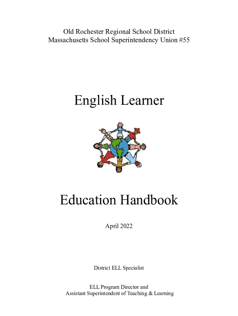 El Manual de Educación para Aprendices de Inglés del Distrito Escolar Regional Old Rochester ha sido creado con la guía del Departamento de Educación Primaria y Secundaria de Massachusetts, y
