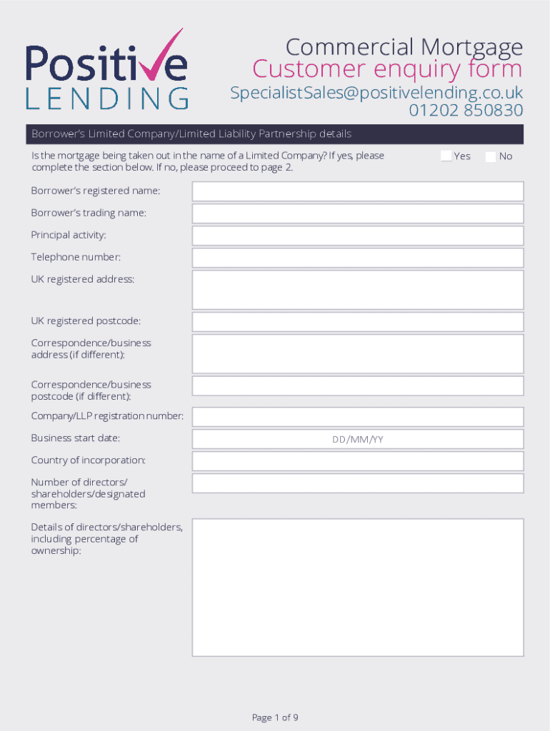 Get the free Commercial Mortgage Customer Enquiry Form - positivelending co