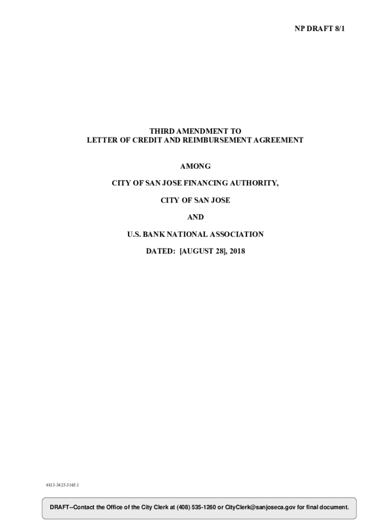 NP DRAFT 8/1THIRD AMENDMENT TO LETTER OF CREDIT AND REIMBURSEMENT AGREEMENT AMONG CITY OF SAN JOSE FINANCING AUTHORITY, CITY OF SAN JOSE AND U.S. BANK NATIONAL ASSOCIATION DATED: [AUGUST 28], 2018481334253165.1DRAFTContact