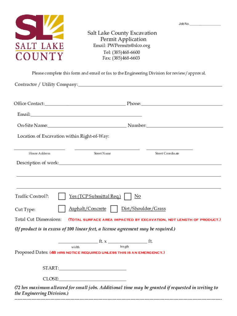 Edit your salt lake county excavation form online