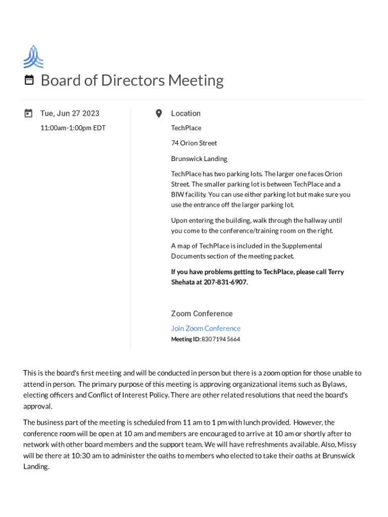 Get the free Maine Space Corporation Board of Directors Meeting