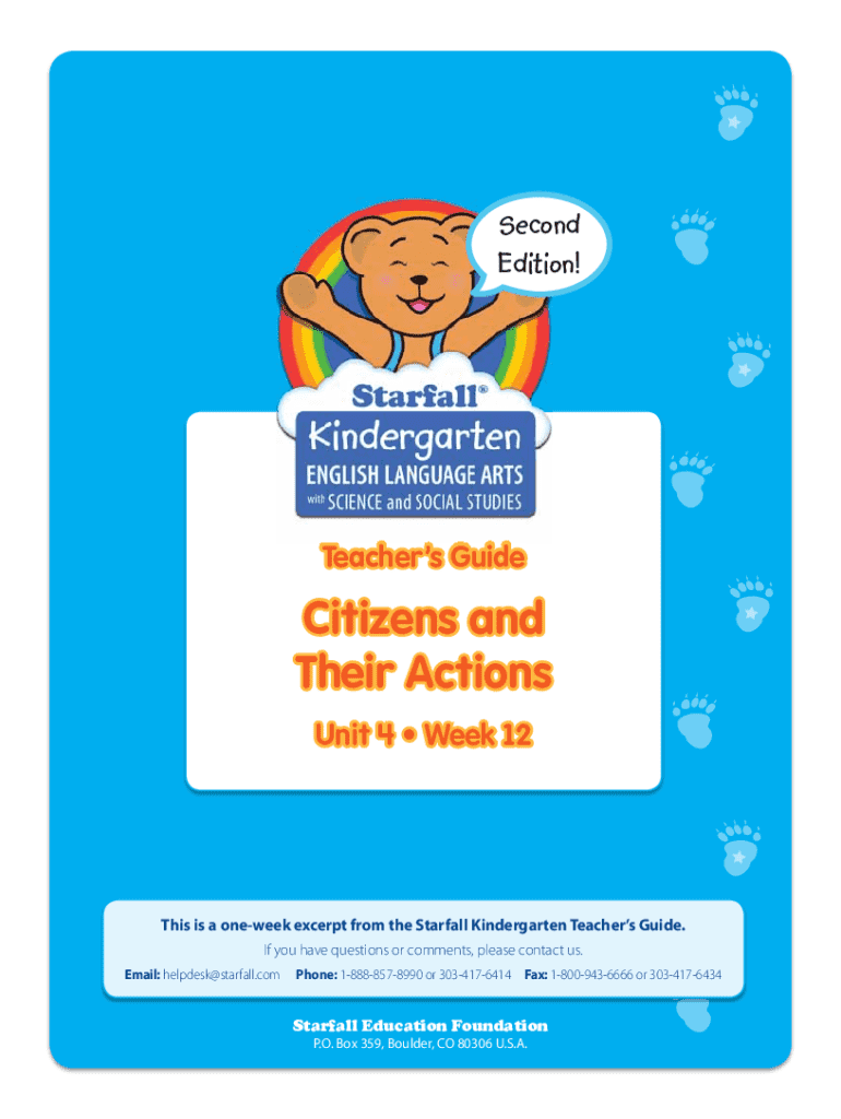 Second Edition!Teachers h Guide idCitizens and Their Actions Unit 4 Week 12This is a oneweek excerpt from the Starfall Kindergarten Teachers Guide. If you have questions or comments, please contact