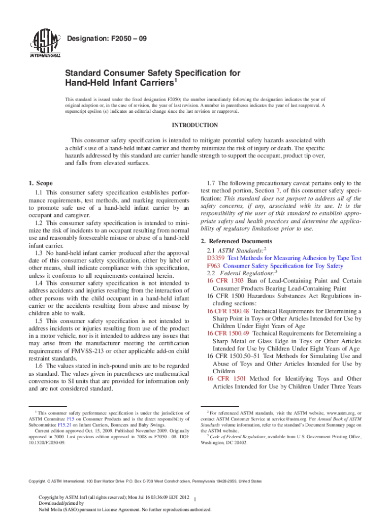 What is the purpose of f2050 - 09?