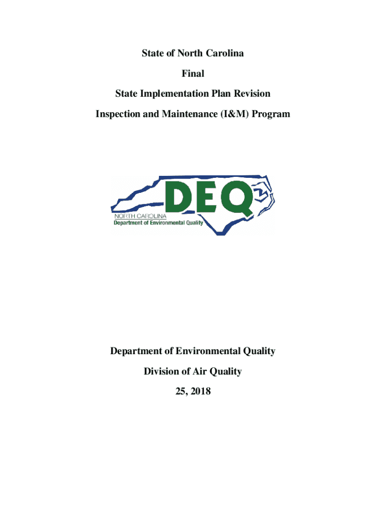 This document outlines the State of North Carolina\'s Motor Vehicle Inspection and Maintenance (I&M) program as required by the EPA regulations to ensure compliance with National Ambient Air Quality