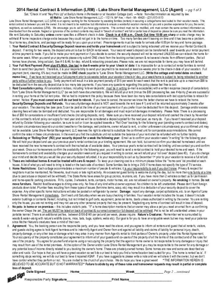 Get the free 2014 Rental Contract & Information