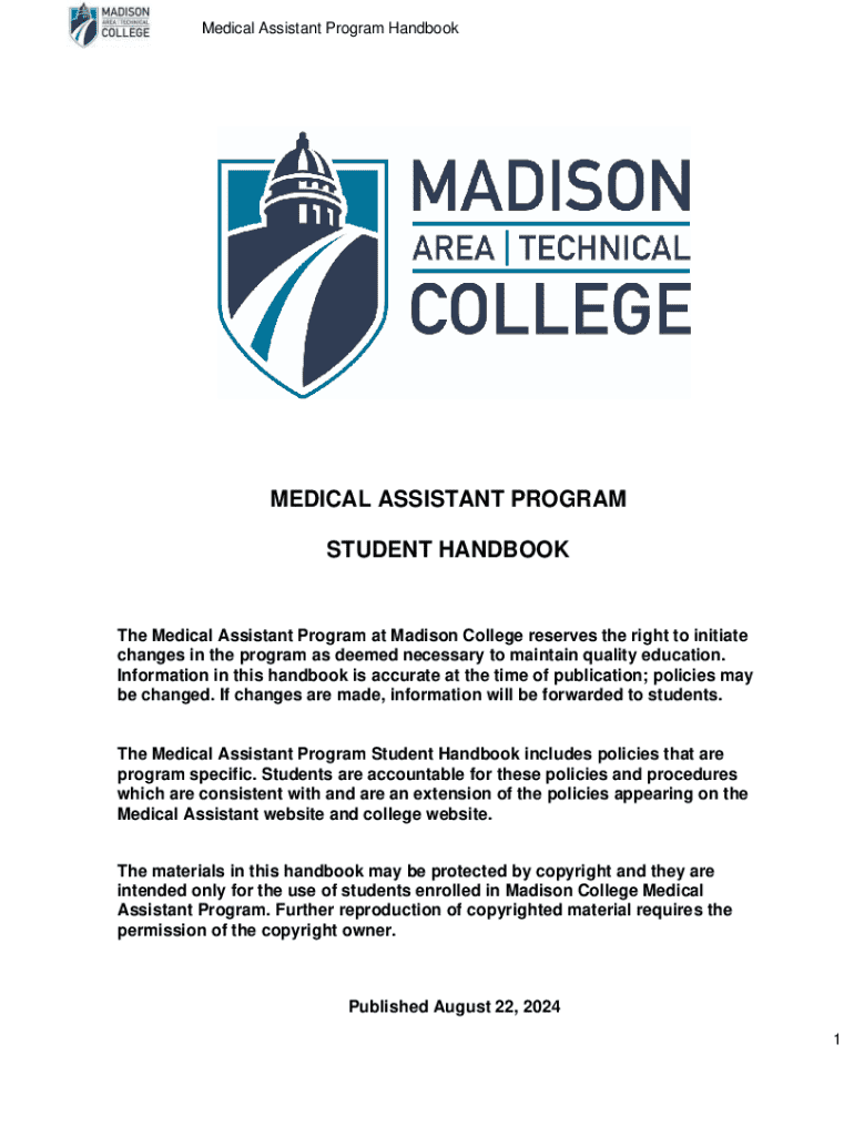 This handbook contains essential information regarding the Medical Assistant Program at Madison College, including policies, procedures, curriculum details, program objectives, and expectations for