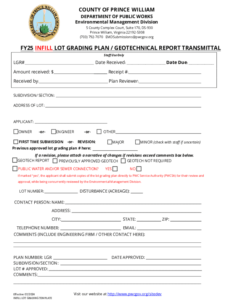 VA FY25 Infill Lot Grading Plan/Geotechnical Report Transmittal - County of Prince William 2024-2026 free printable template