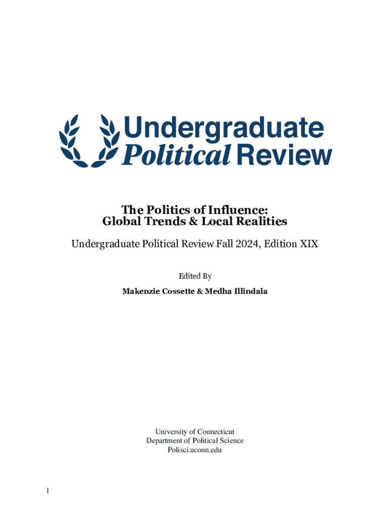 The Politics of Influence: Global Trends & Local Realities Undergraduate Political Review Fall 2024, Edition XIX Edited By Makenzie Cossette & Medha IllindalaUniversity of Connecticut Department of