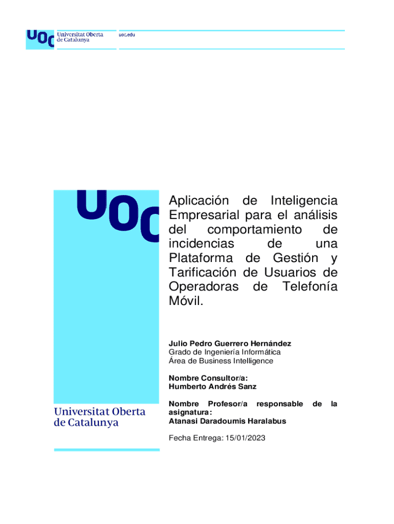 Este proyecto tiene como finalidad principal el análisis del comportamiento de las incidencias generadas a la plataforma que gestiona y tarifica todo lo relacionado con abonados de telefonía móvil