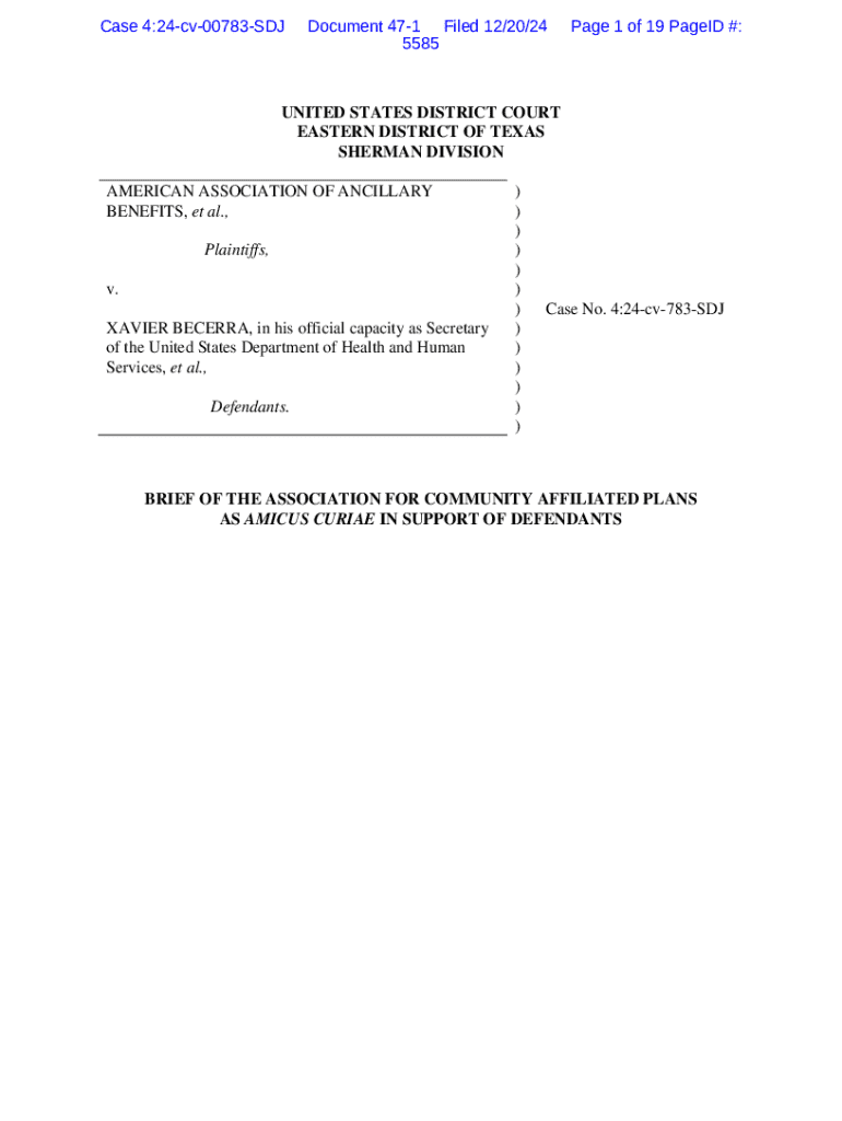 Get the free Brief of the Association for Community Affiliated Plans as Amicus Curiae